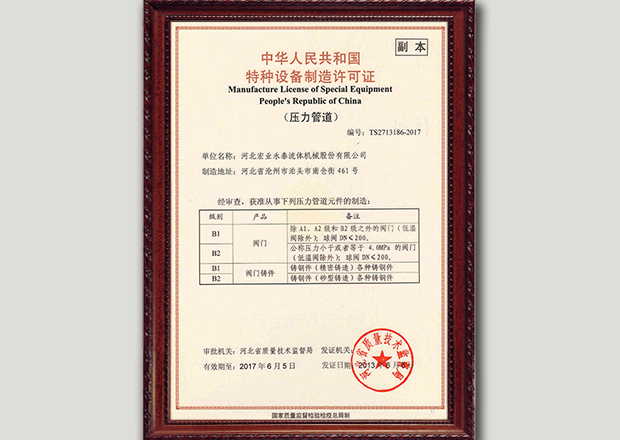 河北宏業永泰流體機械股份有限公司(原泊頭儀表總廠),生產流量儀表產品有三十多年的歷史。參加了節流裝置國家標準GB/T2624-1981的起草工作。公司占地12萬平方米,注冊資金3500萬元。主要產品有節流裝置、儀器儀表、各類不銹鋼閥門、各種化工離心泵。公司取得了ISO9001:2015質量體系認證、挪威船級社CE認證、出口產品Emark認證、特種設備制造許可證等。同時河北宏業永泰還是中石化物資供應商網絡成員,取得了中石油、中海油物資供應商準入證,是中國神華集團、華電集團、大唐集團、中廣核等公司合格供應商。產品出口日本、阿爾及利亞等國家。